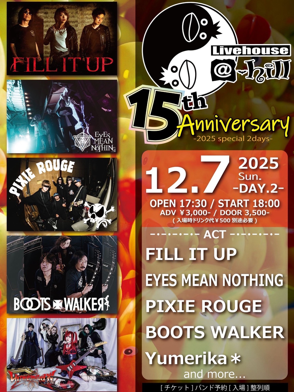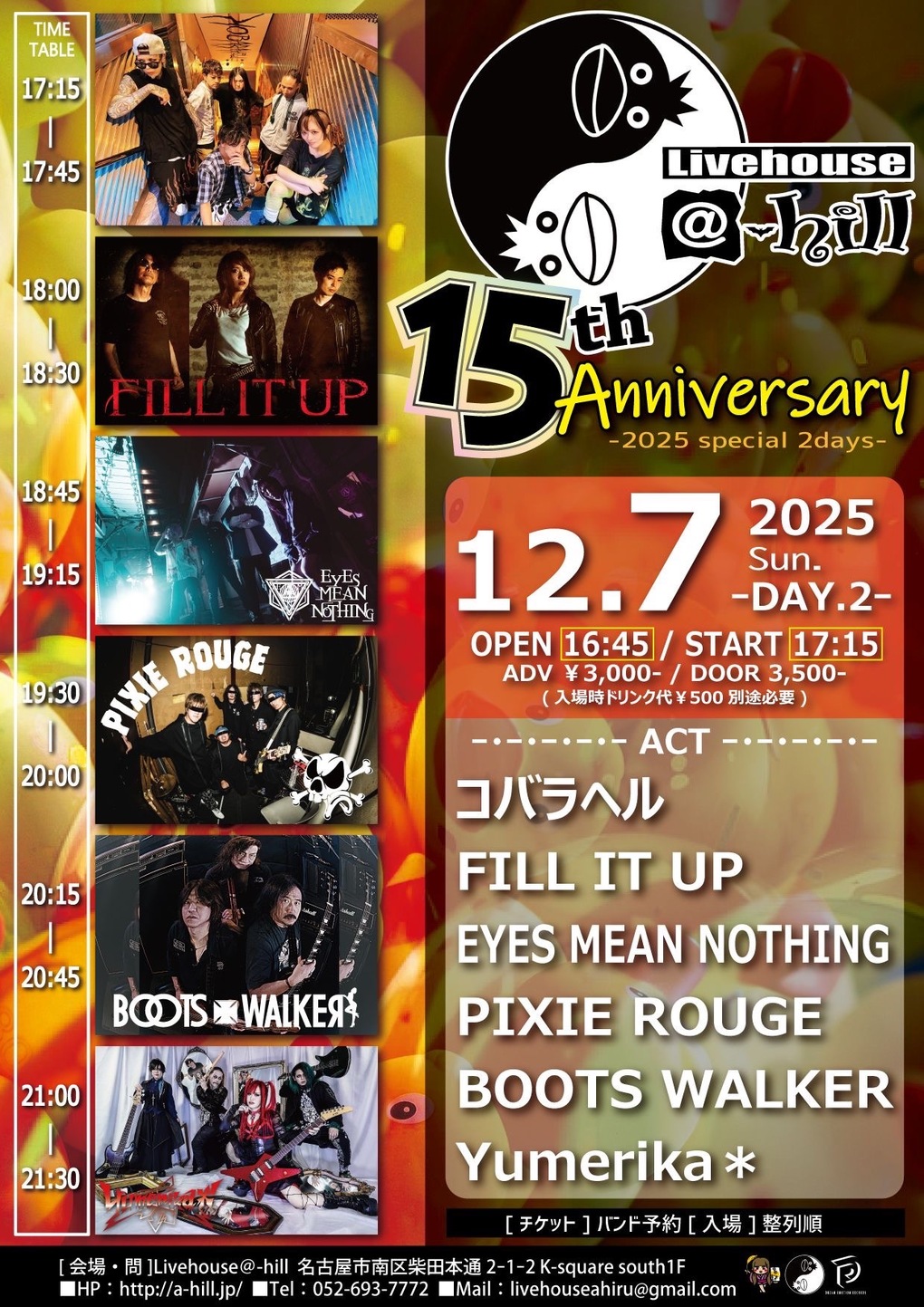 LIVE情報を更新しました! 2025年12月7日(日) 名古屋@-hill